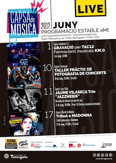 Des de fa molts anys, per l’aMt el mes de juny és sinònim de la celebració del Dia de la Música, sempre amb un concert especial gratuït en què s’homenatja a alguna figura clau del pop-rock. Aquest any, per primer cop –i ja tocava!-, l’homenatjada serà una artista femenina: Madonna. Però a més d’aquest concert, la Capsa també acull aquest mes altres concerts i activitats.