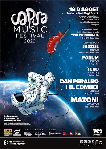 Aquest 2022 el Capsa Music Festival se celebrarà el 18 d’agost, totalment gratuït per als assistents. A més de la seqüència festivalera de vermut-nit-matinada, programem també al matí a les 12:30 h la jornada de portes obertes, per tal que la ciutadania s’acosti a conèixer les interioritats de l’espai musical que és la Capsa de Música. *A les 13:15 h tindrà lloc el concert de vermut i a partir de les 20:00 h els concerts de nit i matinada.